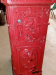 Origineel groen, door de vorige eigenaar bordeaux rood geschilderd met witte accenten.