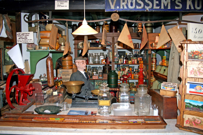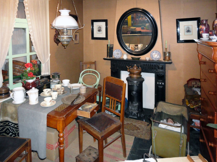Foto’s: Boenhoek, exterieur, huiskamer en kruidenierswinkel.